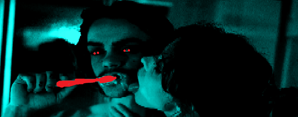 Su mueca es horrible por ser permanente: ojos abiertos al máximo, cejas dolorosamente altas, labios ampulosos y blancos. Mientras camina infatigable, la amada A repite todo el tiempo, con voz clara y decidida: Aléjate de la palabra, teme a los buenos y ama a los malos.